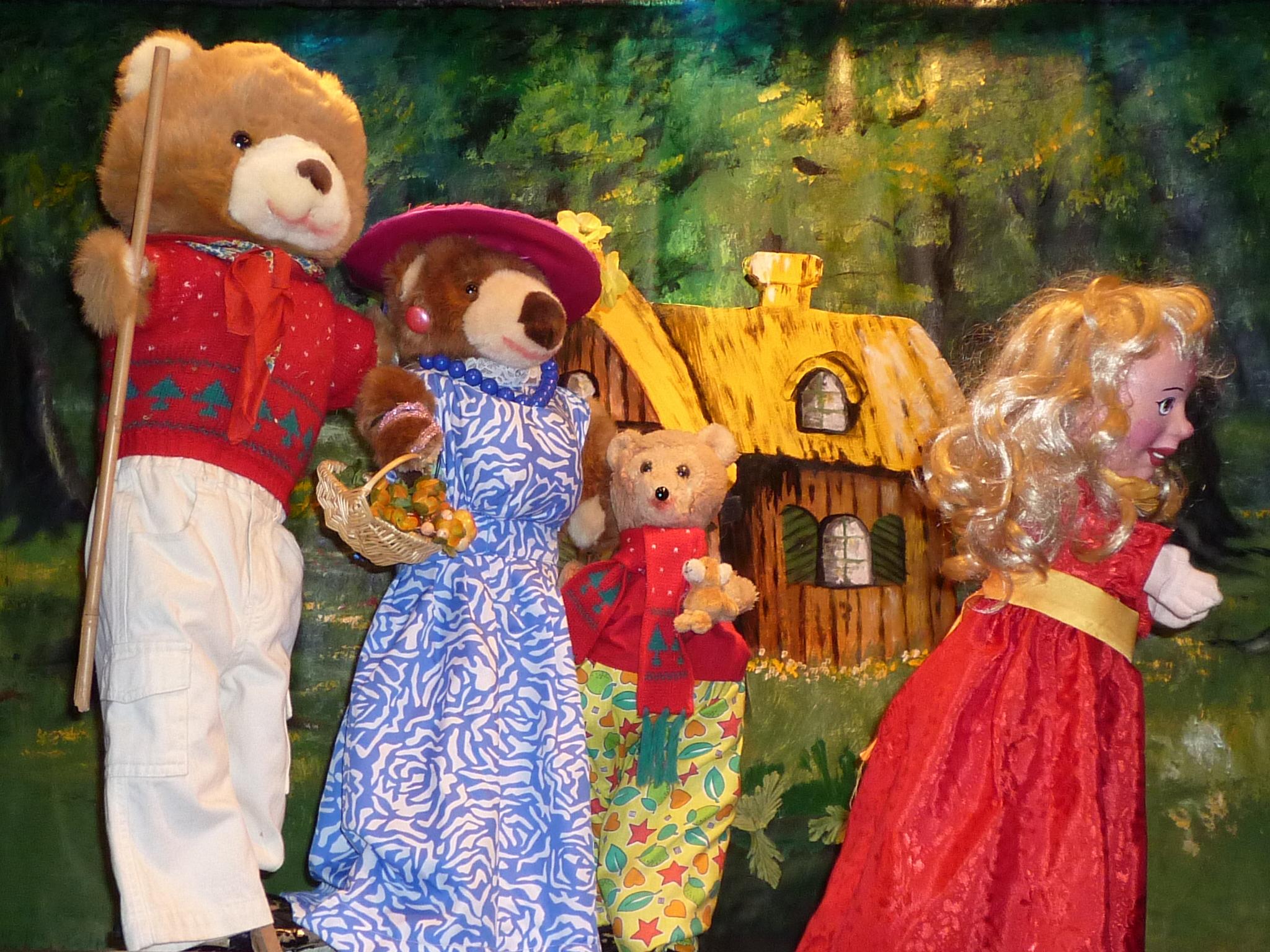 Boucle d’Or court à perdre haleine, toujours suivie de Ratapon. Petit Ours aimerait tellement la rattraper, mais papa et maman ours renoncent, elle est déjà trop loin.