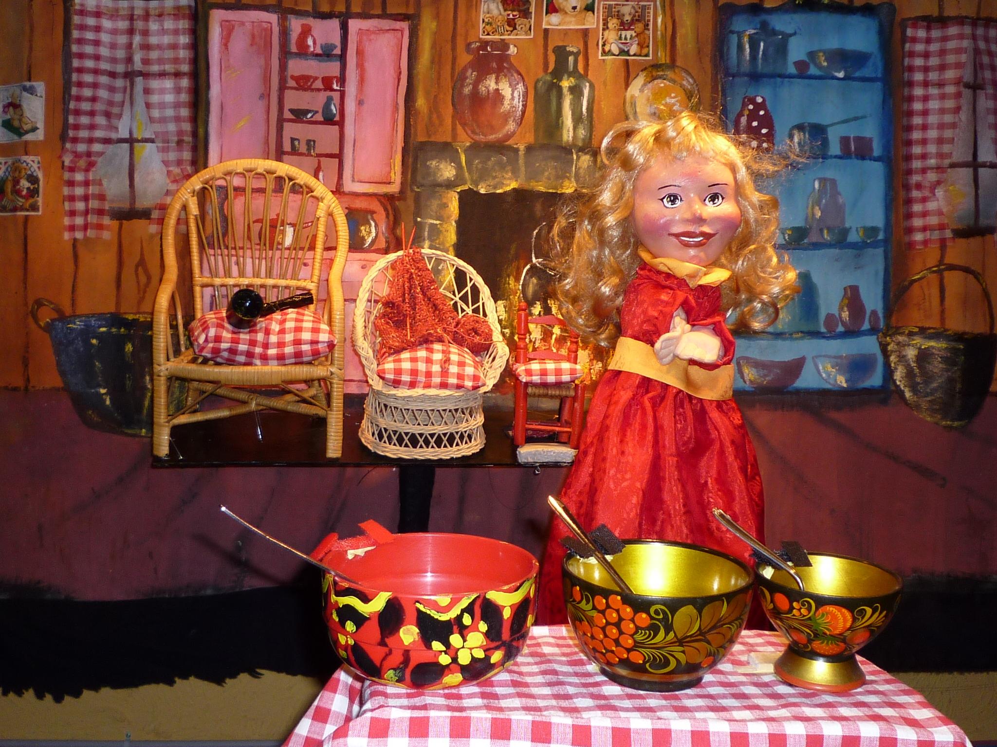 La porte est ouverte et les occupants absents. La curiosité de Boucle d’Or l’emporte sur sa terreur, au point de s’enhardir et d’oublier tout respect d’un cadre privé. Redoublant d’audace, elle teste les trois bols et fauteuils, grand, moyen, petit, se permet de vider le petit bol de soupe et de casser la petite chaise sans regret.